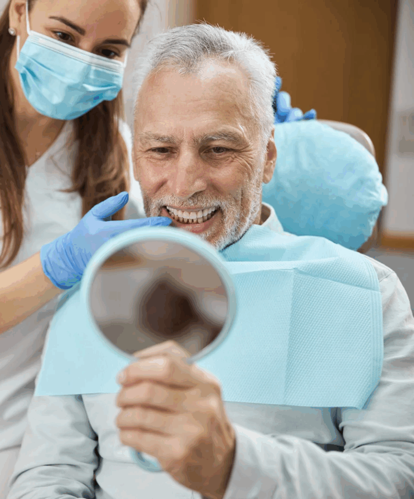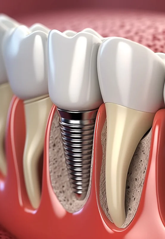 O tratamento é realizado com pinos de titânio que se integram ao osso, garantindo estabilidade, segurança e um resultado duradouro.